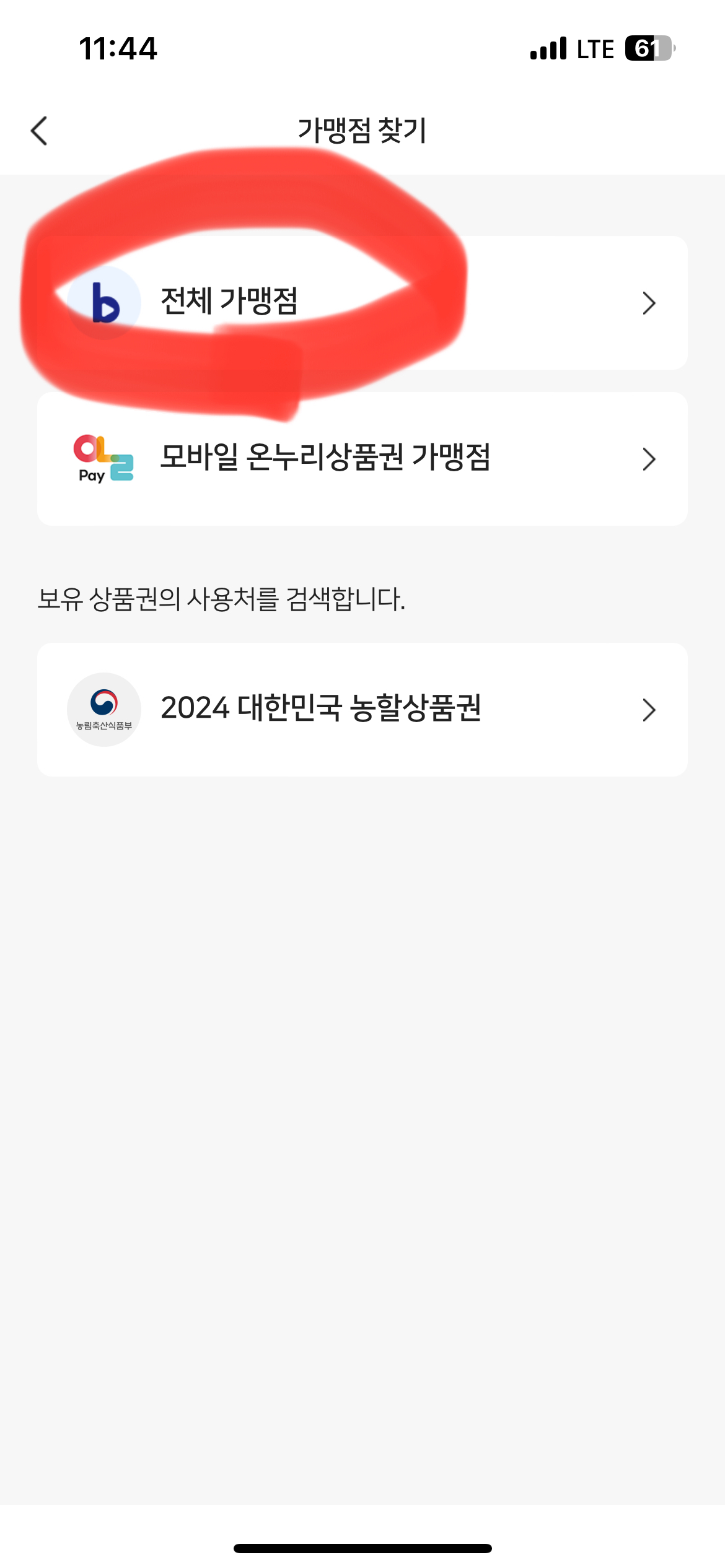 8. 전체가맹점을 눌러주세요.