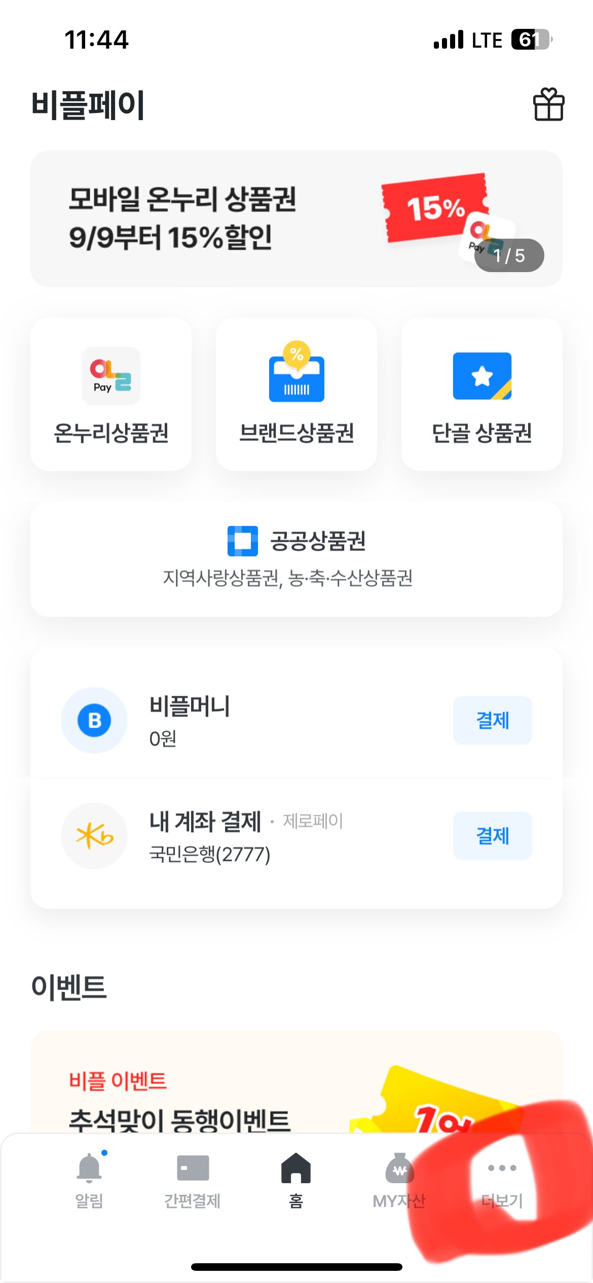 6. 가맹점 확인 방법입니다. 홈화면으로 돌아가서 우측 하단에 더 보기를 클릭합니다.