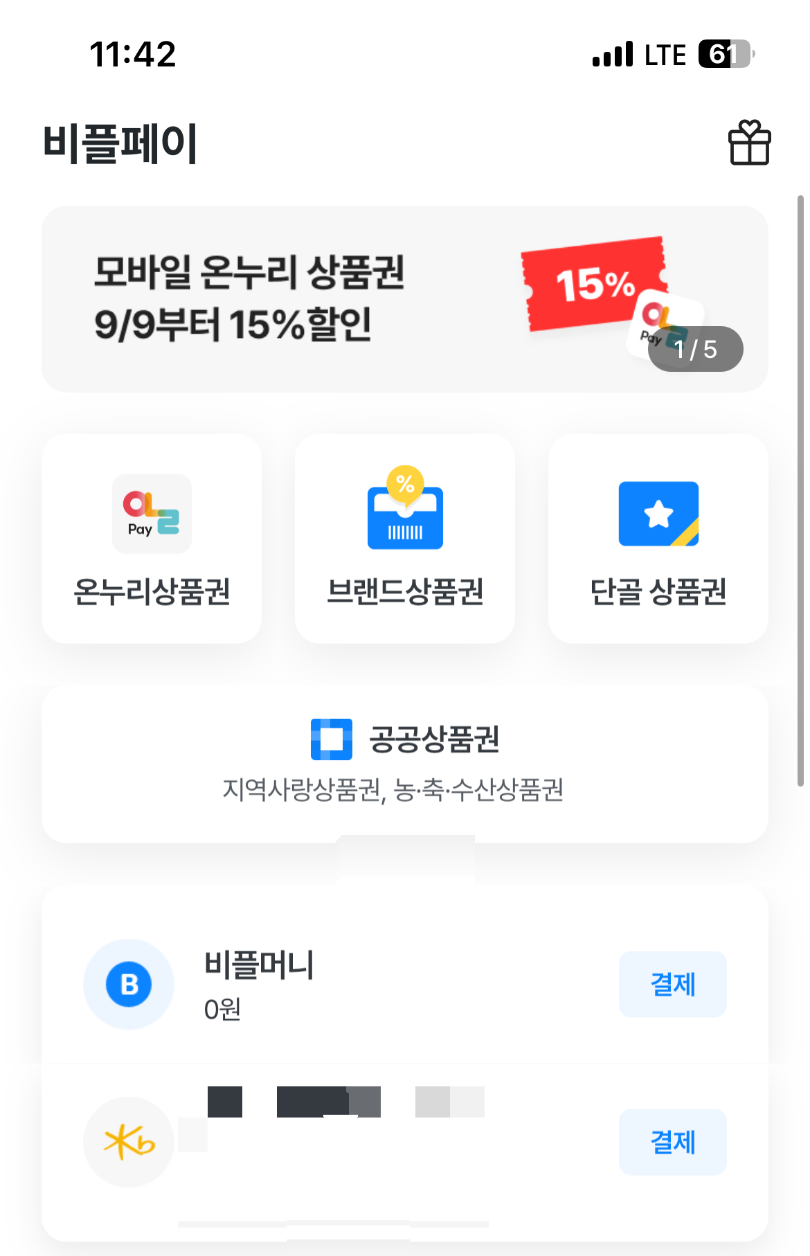 2. 홈 화면의 가운데 공공상품권을 클릭해 줍니다.