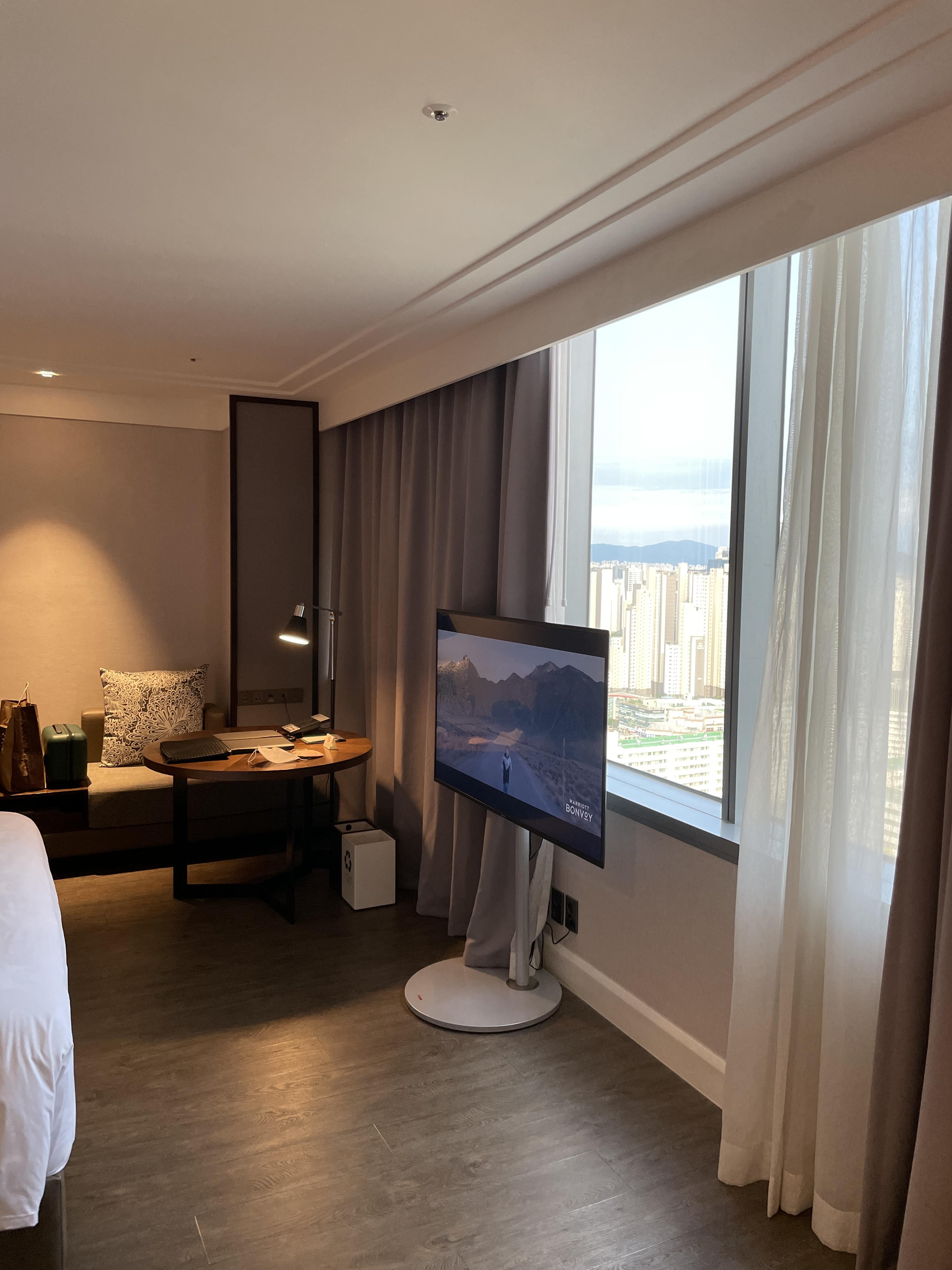 방이 전체적으로 아늑하고 고급스러운 느낌이었어요. JW메리어트의 침대 프레임은 개인적으로 참 고급스럽고 예쁜 것 같아요. 엔틱 한 가구를 좋아하는데 엔틱 하면서도 고급진 느낌이 맘에 들었습니다. 쿠션이 다른 호텔보다 많았습니다.