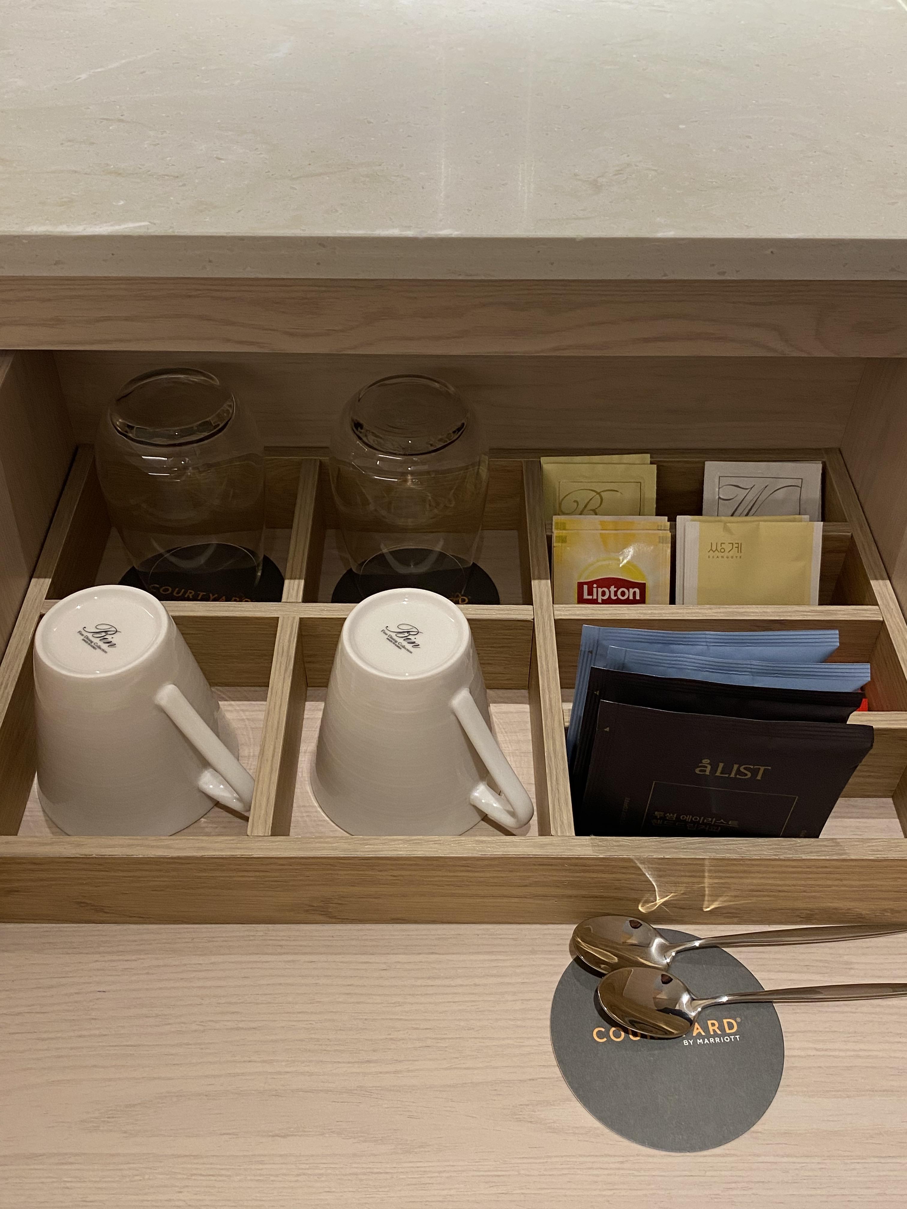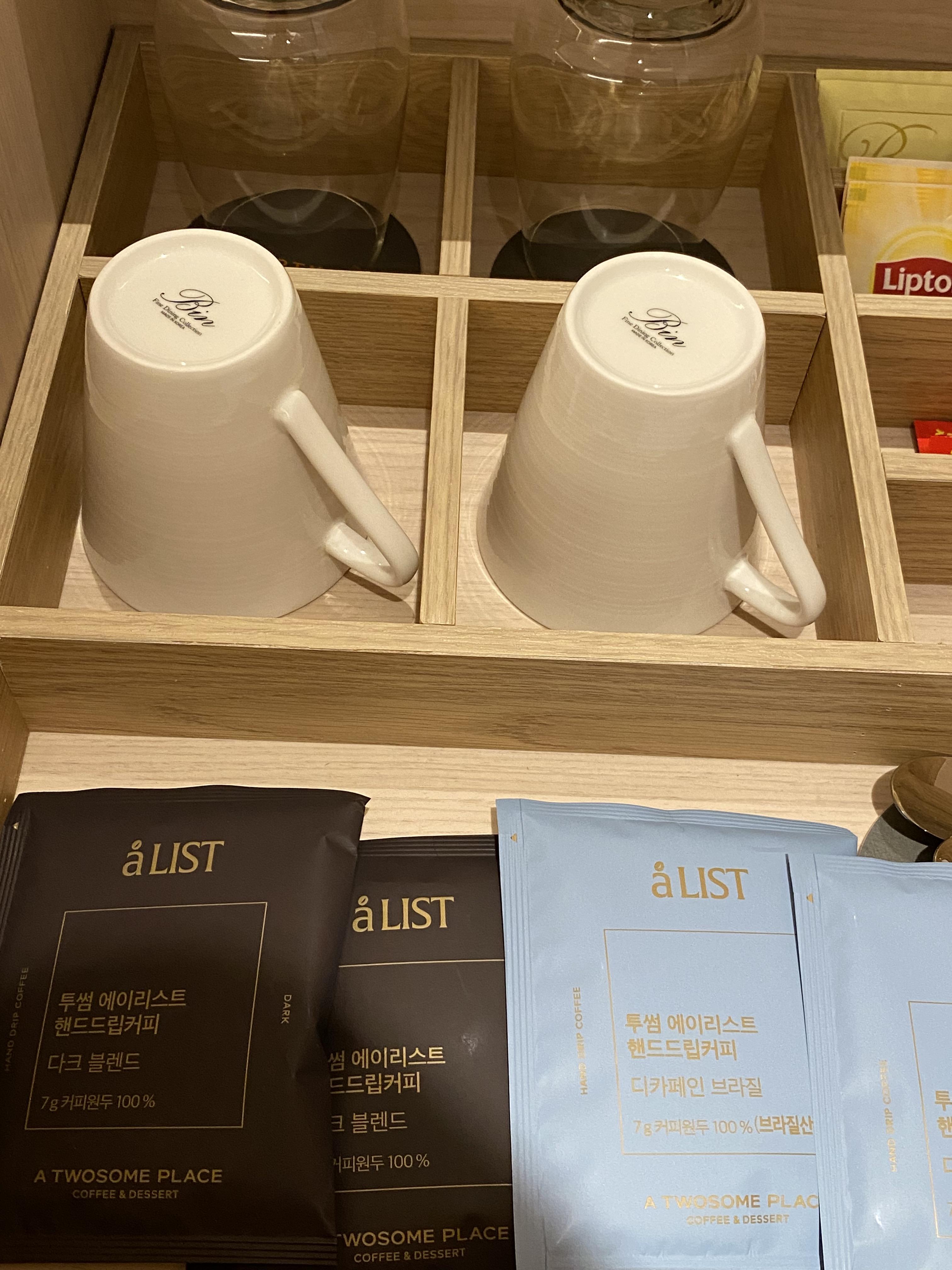 컴프중에서 커피는 캡슐커피는 없었고, 드립커피 4개와 녹차가 준비되어 있었습니다.