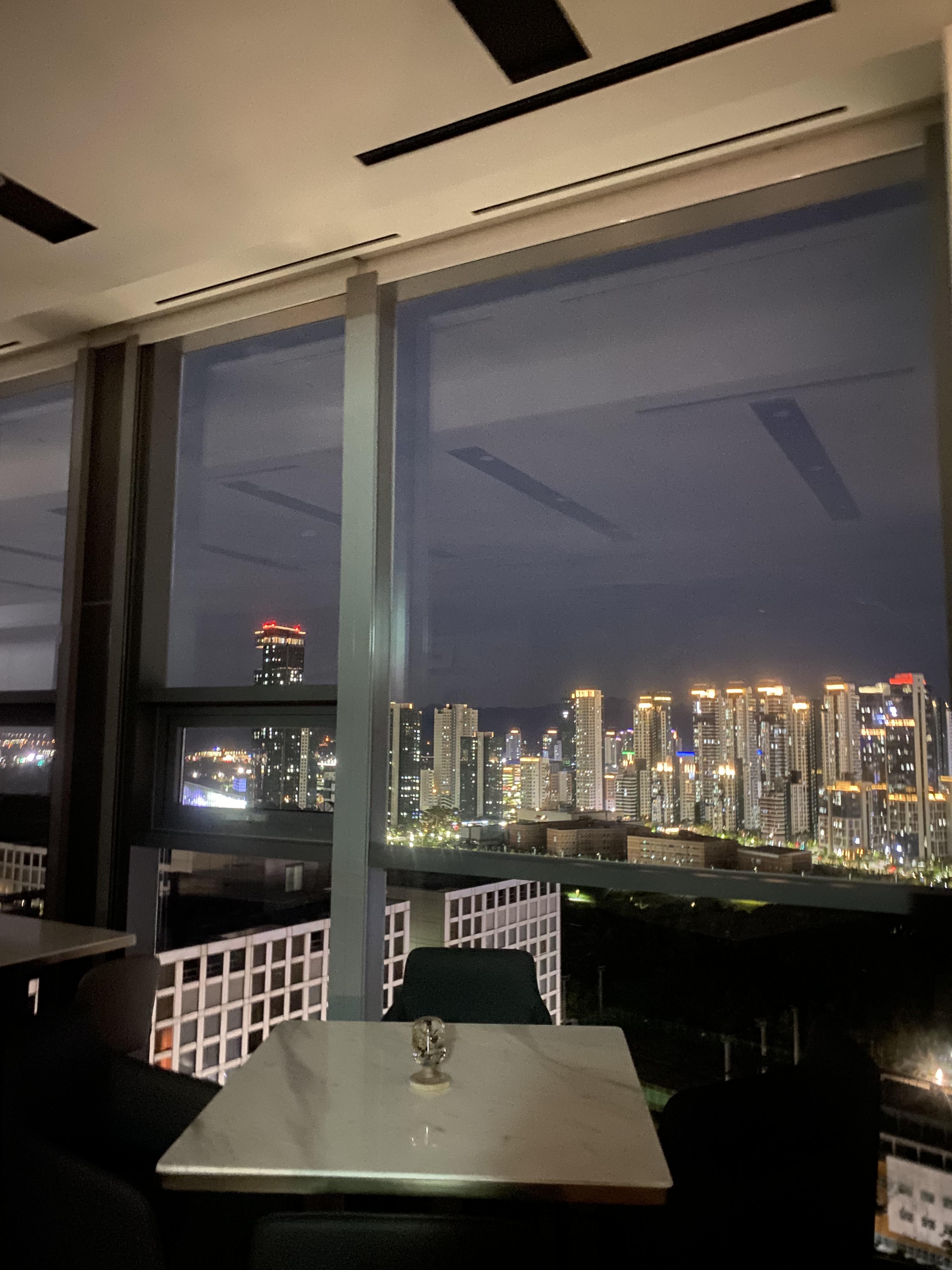라운지의 도심 뷰입니다. 뷰는 멋있더라고요.