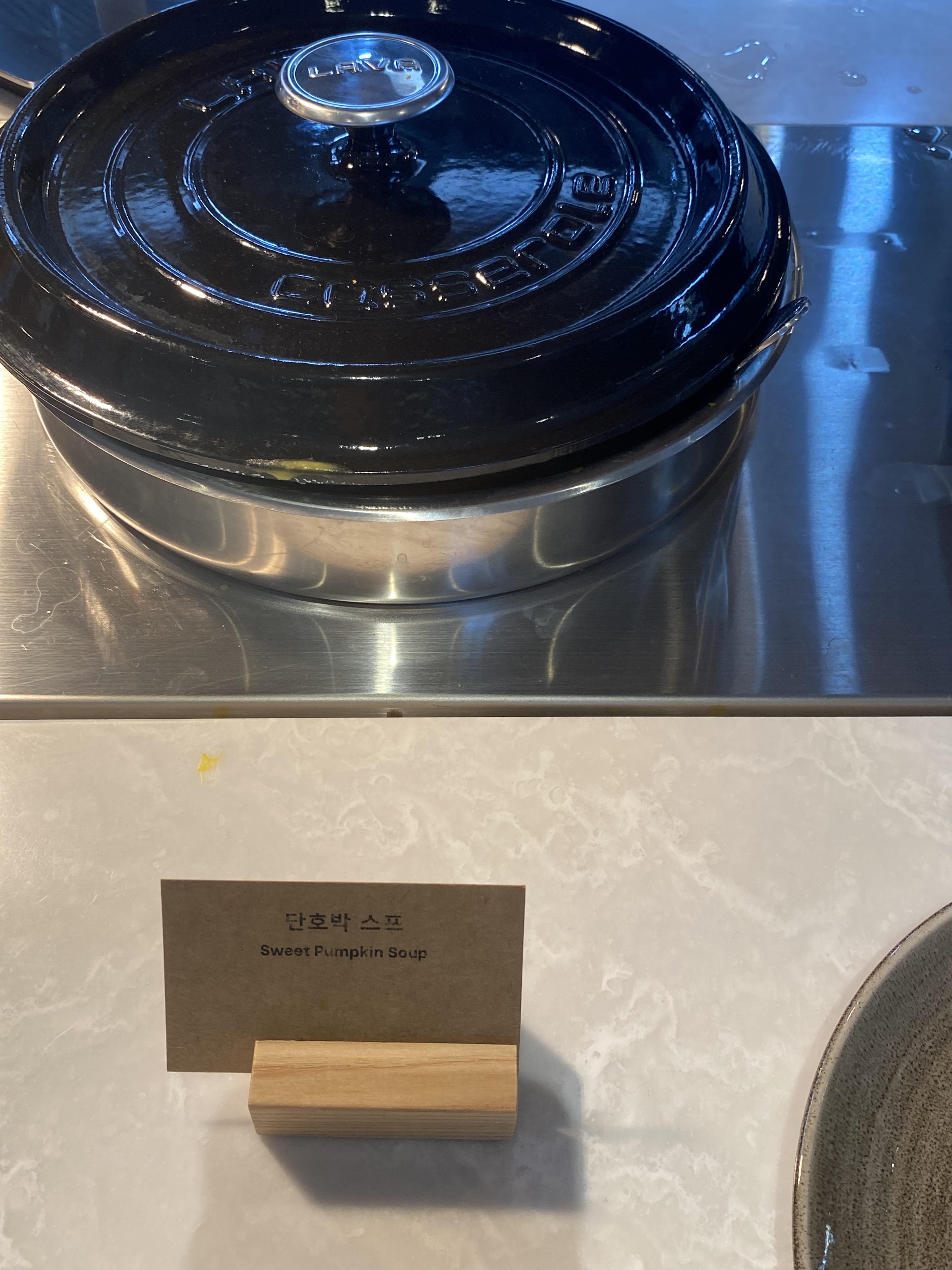 단호박 수프와 전복죽, 미역국입니다.