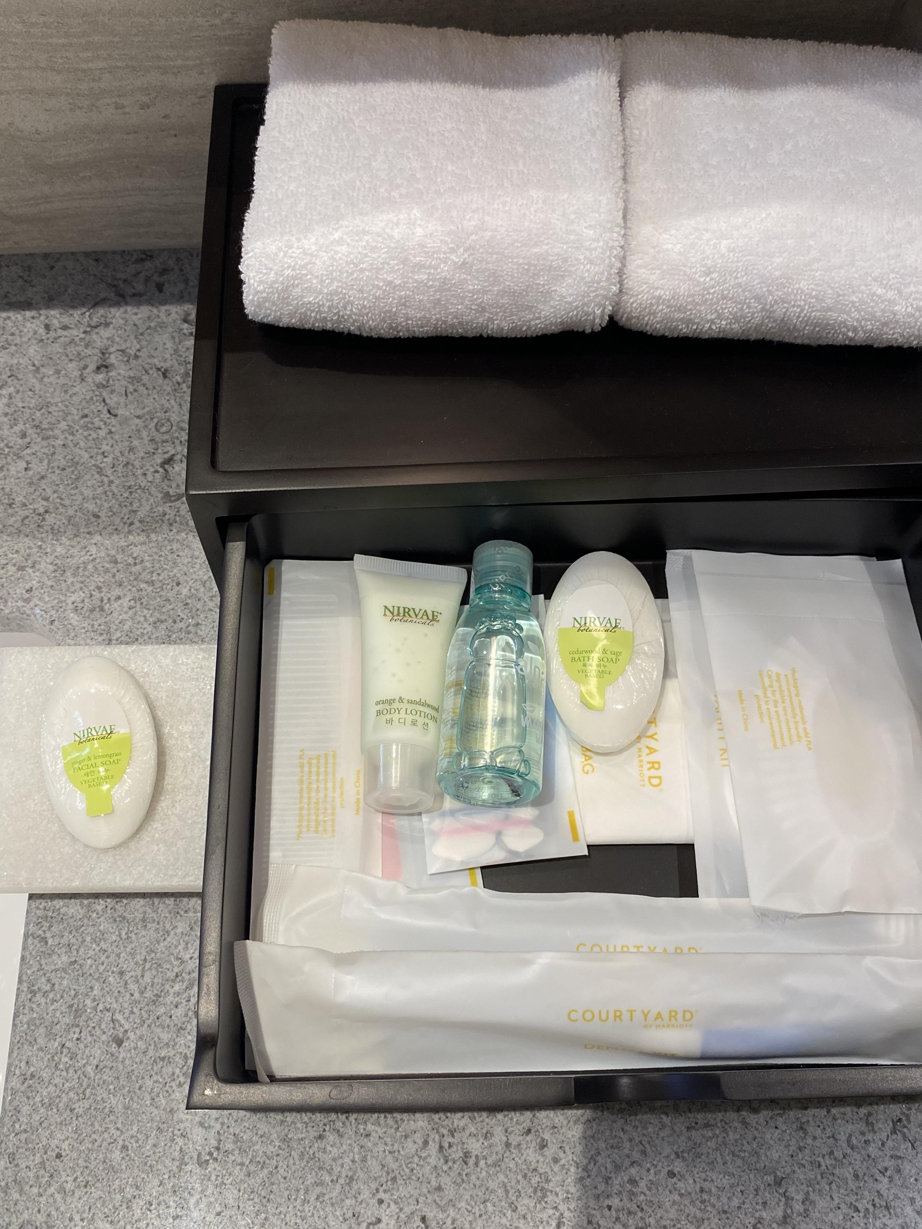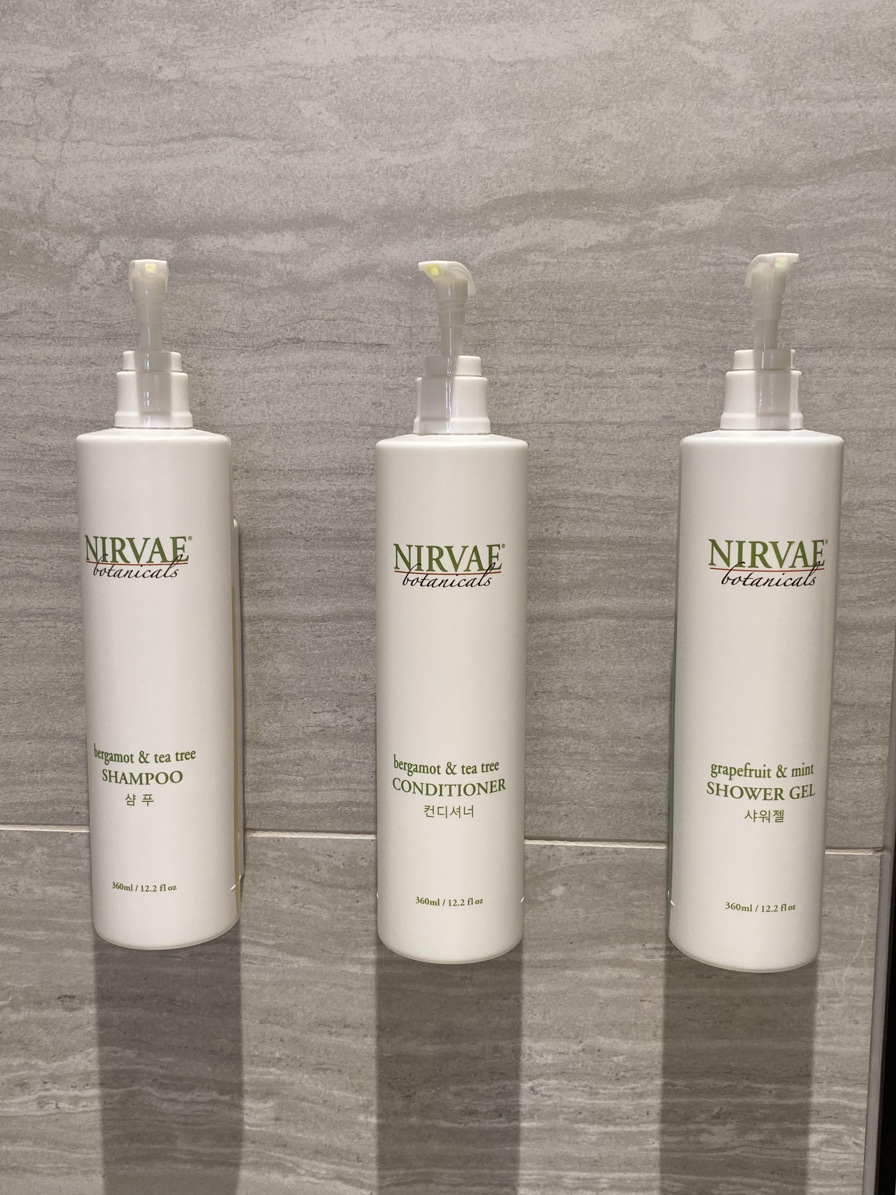 어매니티 브랜드는 NIRVAE입니다. 찾아보니까 코트야드 바이 메리어트 호텔이 이 브랜드를 사용하더라고요.