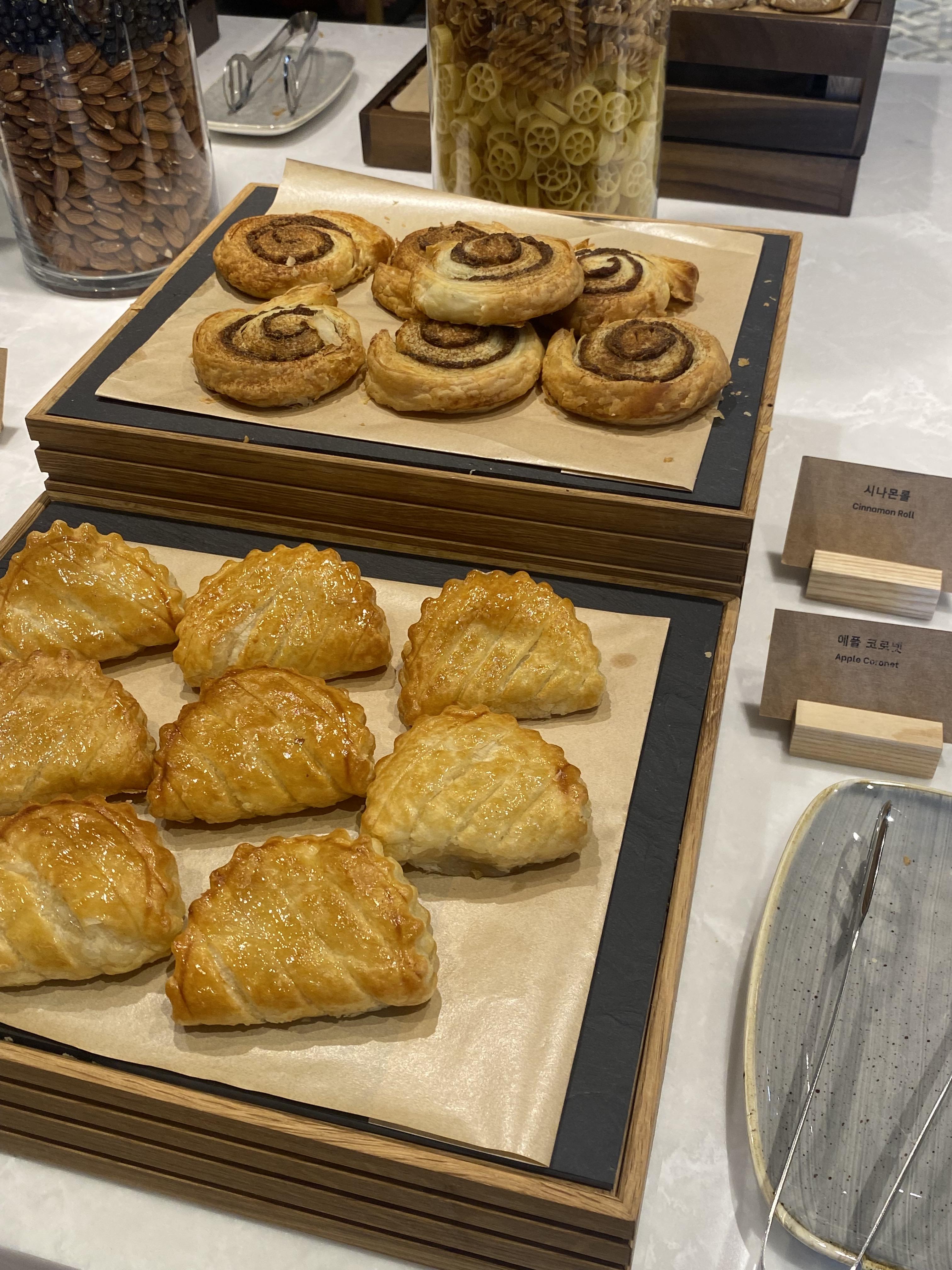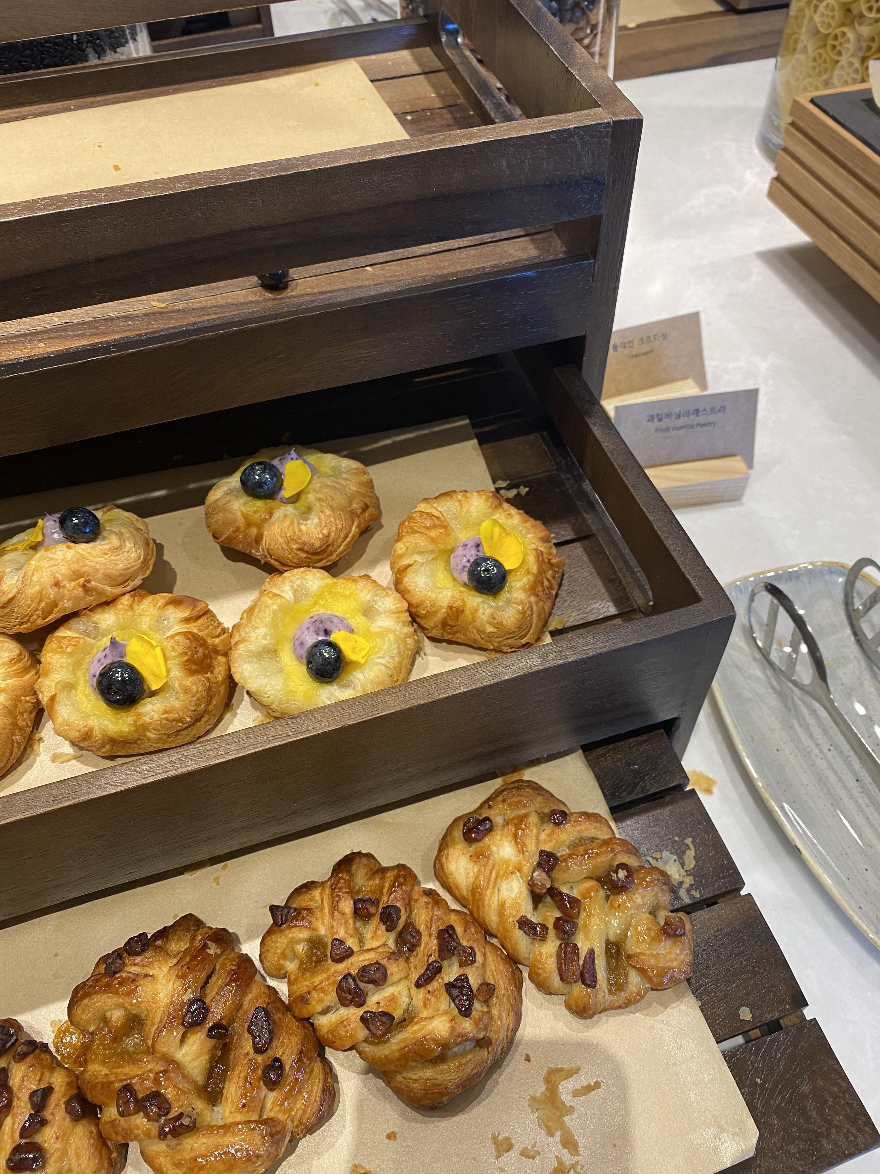 빵 종류가 많고 맛있었어요. 특히 블루베리와 망고가 올라간 페스츄리가 맛있었습니다.