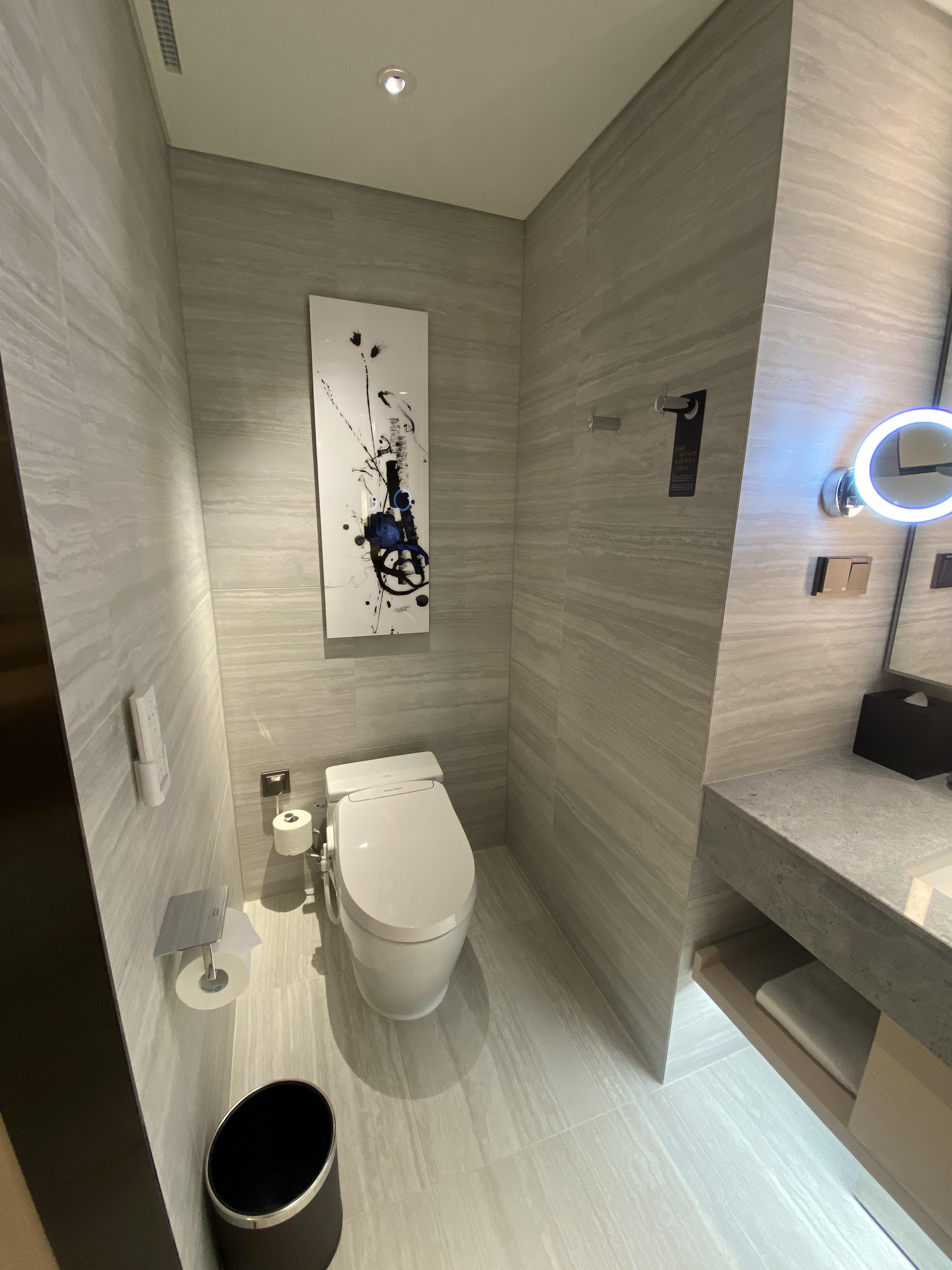 변기는 분리되어있지 않고, 세면대 왼쪽에 있었습니다. 분리되어있다면 참 좋았을텐데! 조금 아쉬웠어요.