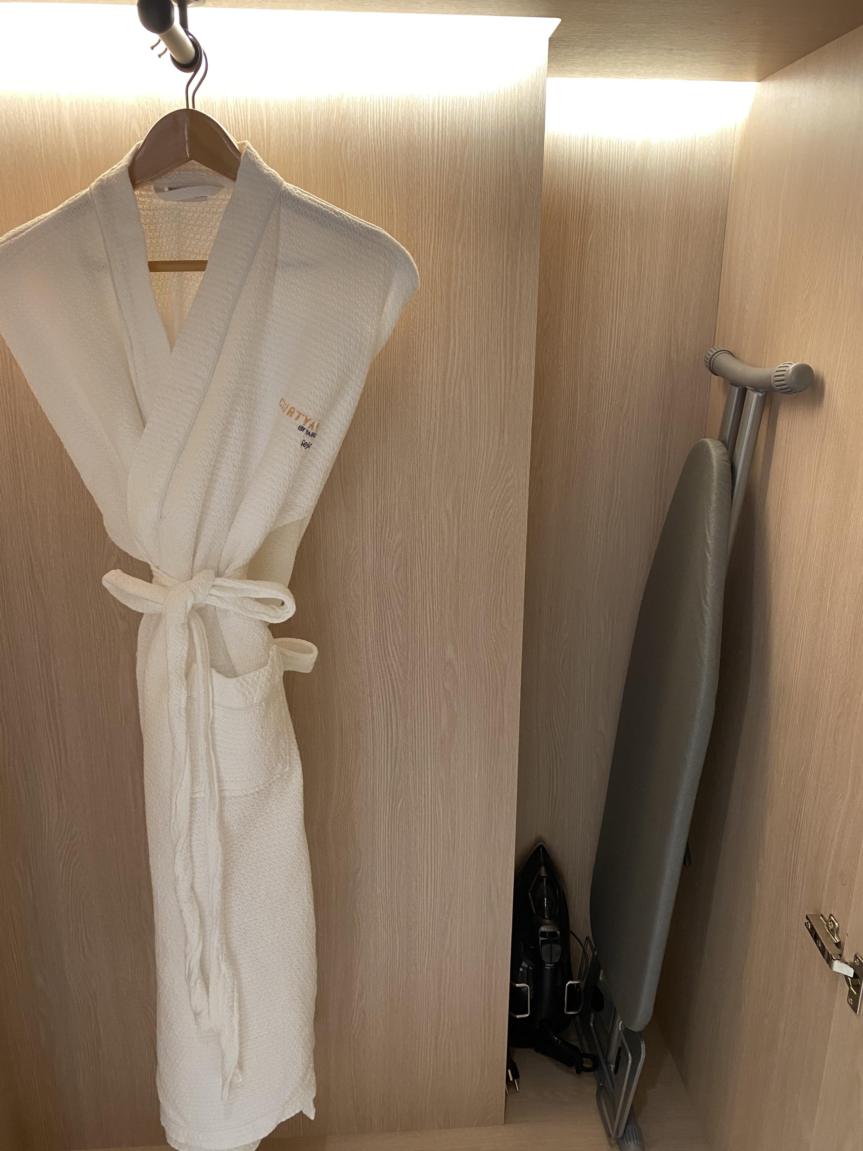 옷장에는 가운과, 슬리퍼 옷걸이가 있습니다.