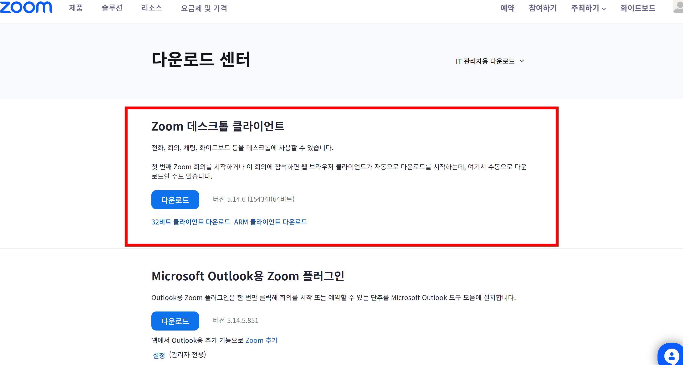 1. 아래를 클릭해 주세요. 클릭하시면 줌 다운로드 화면이 나옵니다.