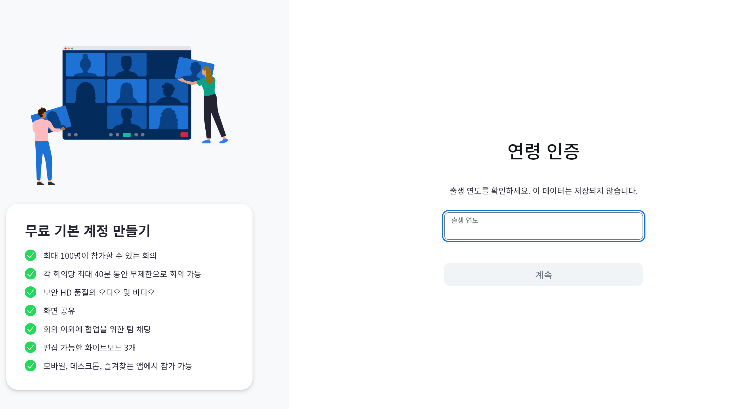 3. 무료가입을 클릭하시면 연령인증이 나옵니다. 태어난 출생 연도를 1995처럼 숫자 네 자리로 입력해주세요.