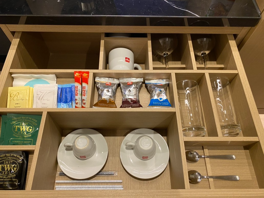 Tip: 냉장고 안에 있는 미니바는 비용이 청구된다는 점과 컴플리멘터리는 무료라는 것 기억하세요!