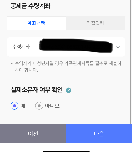 8. 공제금 수령 계좌를 확인합니다. 직접 입력할 수도 있습니다.