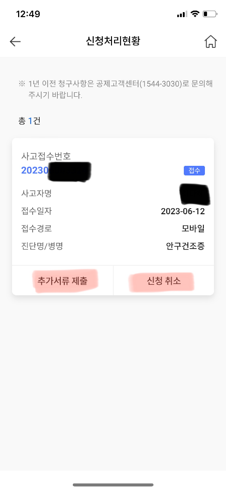 * 어플을 이용해서 청구하는 경우에 본인부담총액 또는 청구 금액이 500만 원 이하여야 합니다.