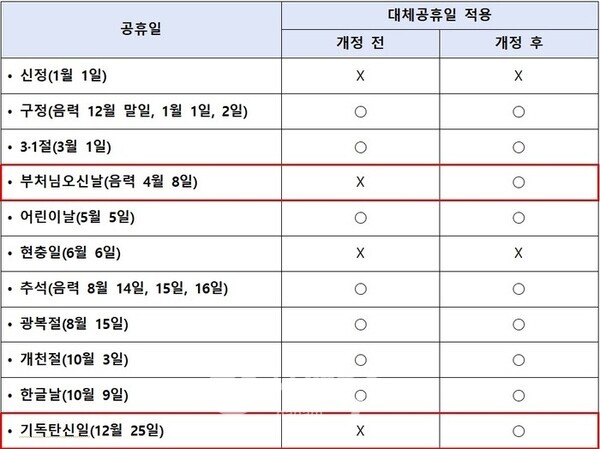 법정 공휴일이 다른 휴일과 겹치는 경우 공휴일 다음 첫 번째 비공휴일을 공휴일로 하는 것입니다.